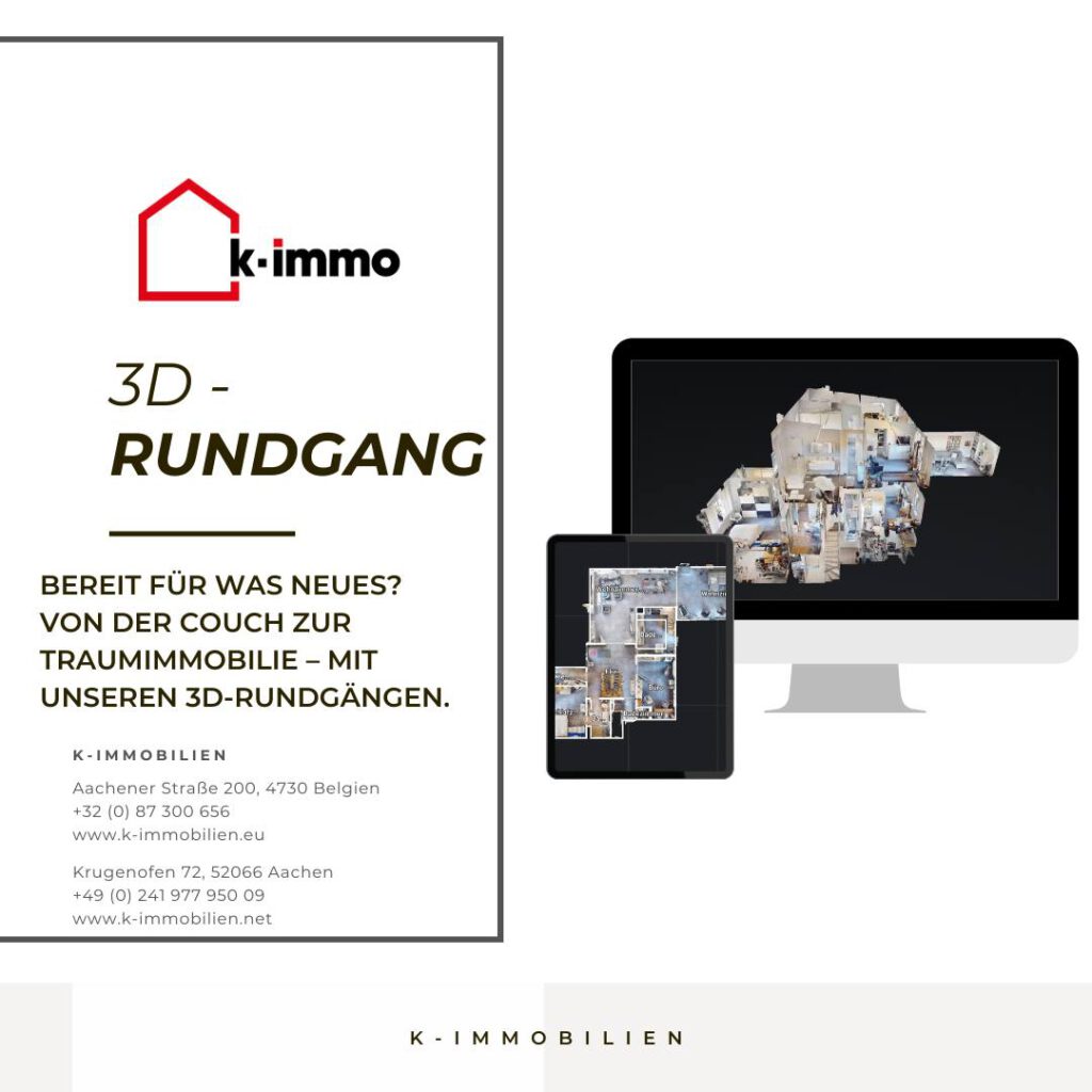 Sie bewegen sich frei durch jede Immobilie, sehen jedes Detail aus der Nähe und können sogar Wände und Räume direkt im Rundgang ausmessen. So bekommen Sie ein echtes Gefühl für Grundrisse, Größen und die Atmosphäre – ganz bequem vom Sofa aus.